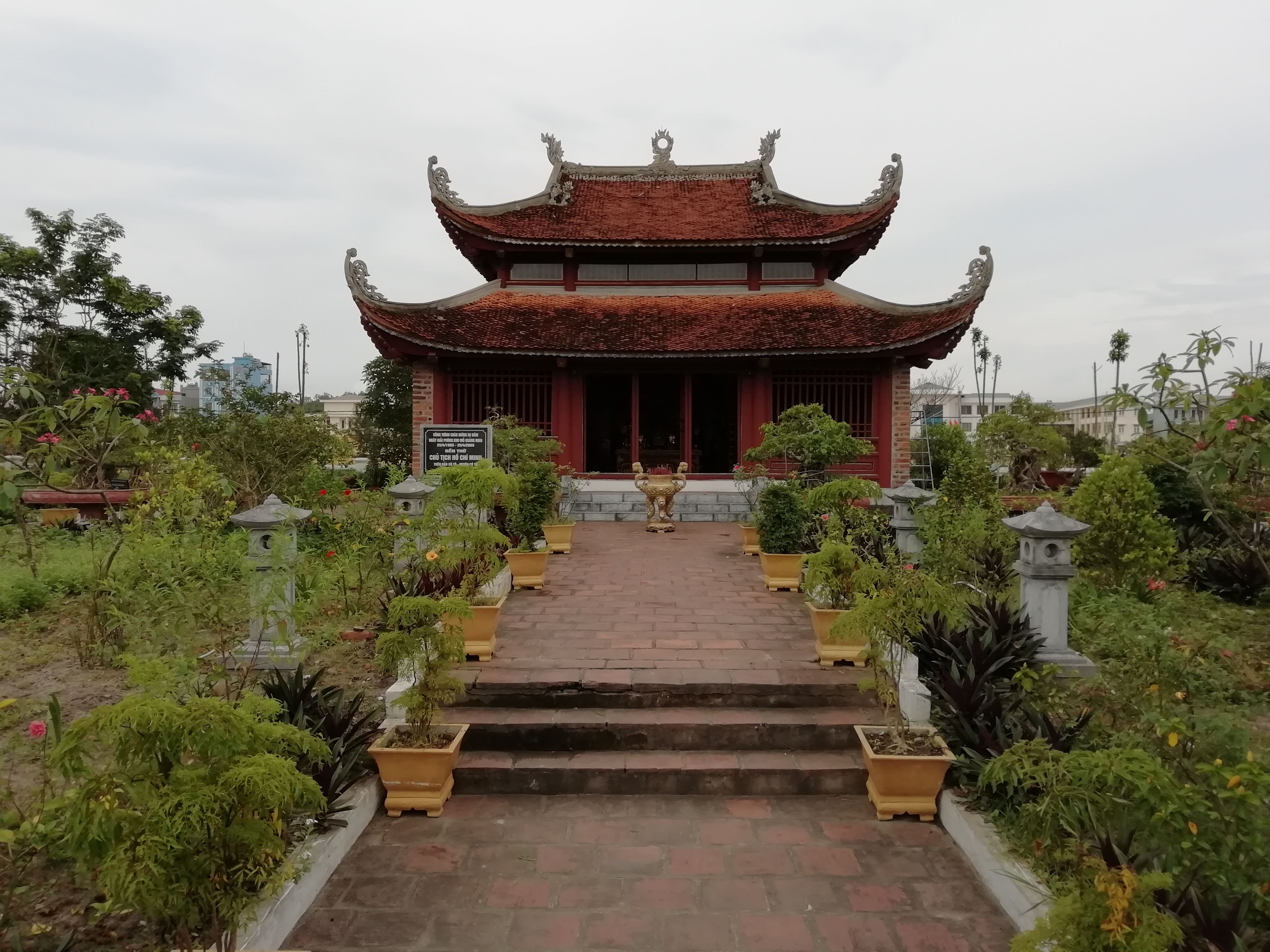 [keikou]ホーチミンさんの像[/keikou]があり、ローカルベトナム人が写真を撮ってました。後ろに寺院があります。